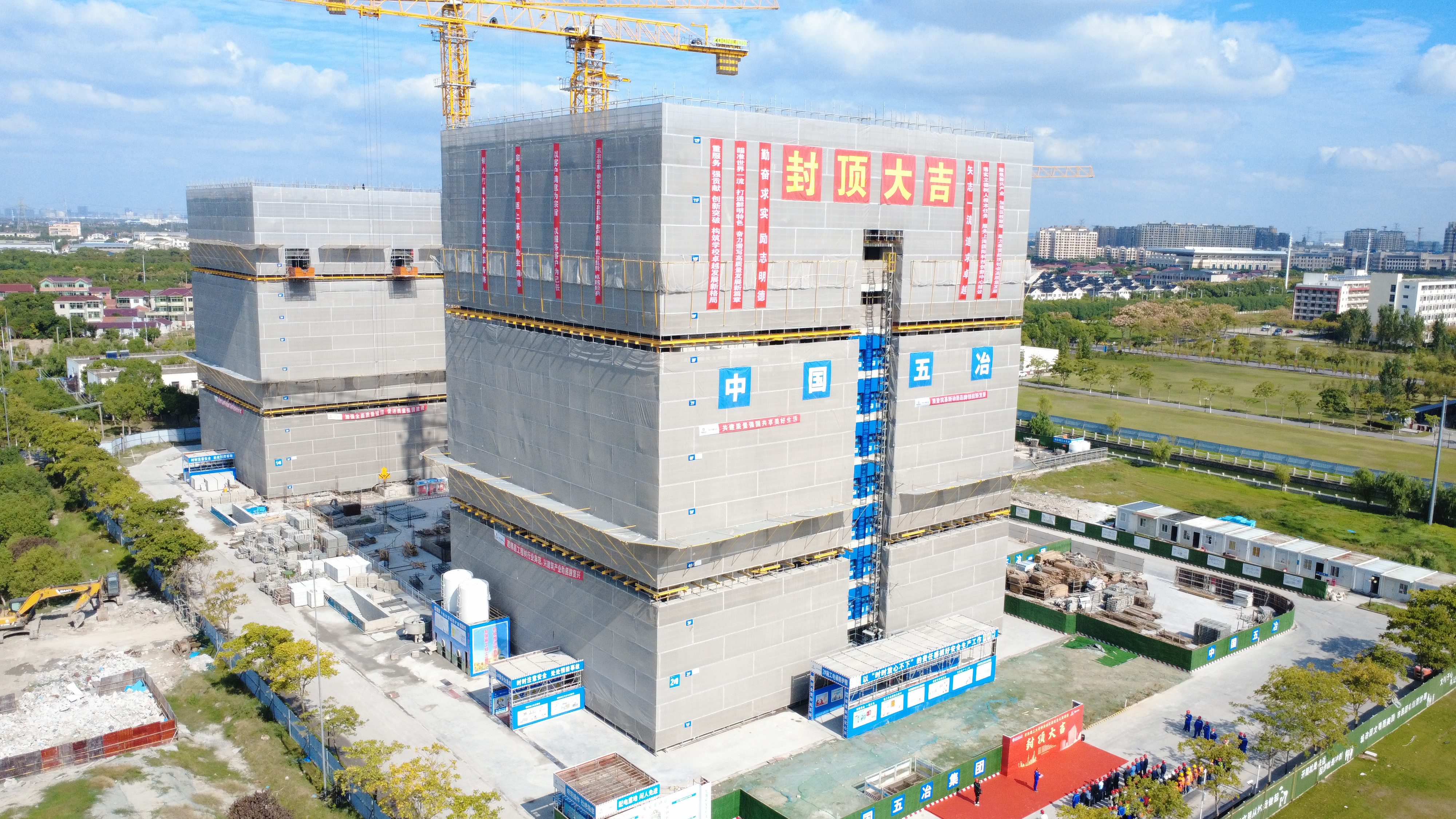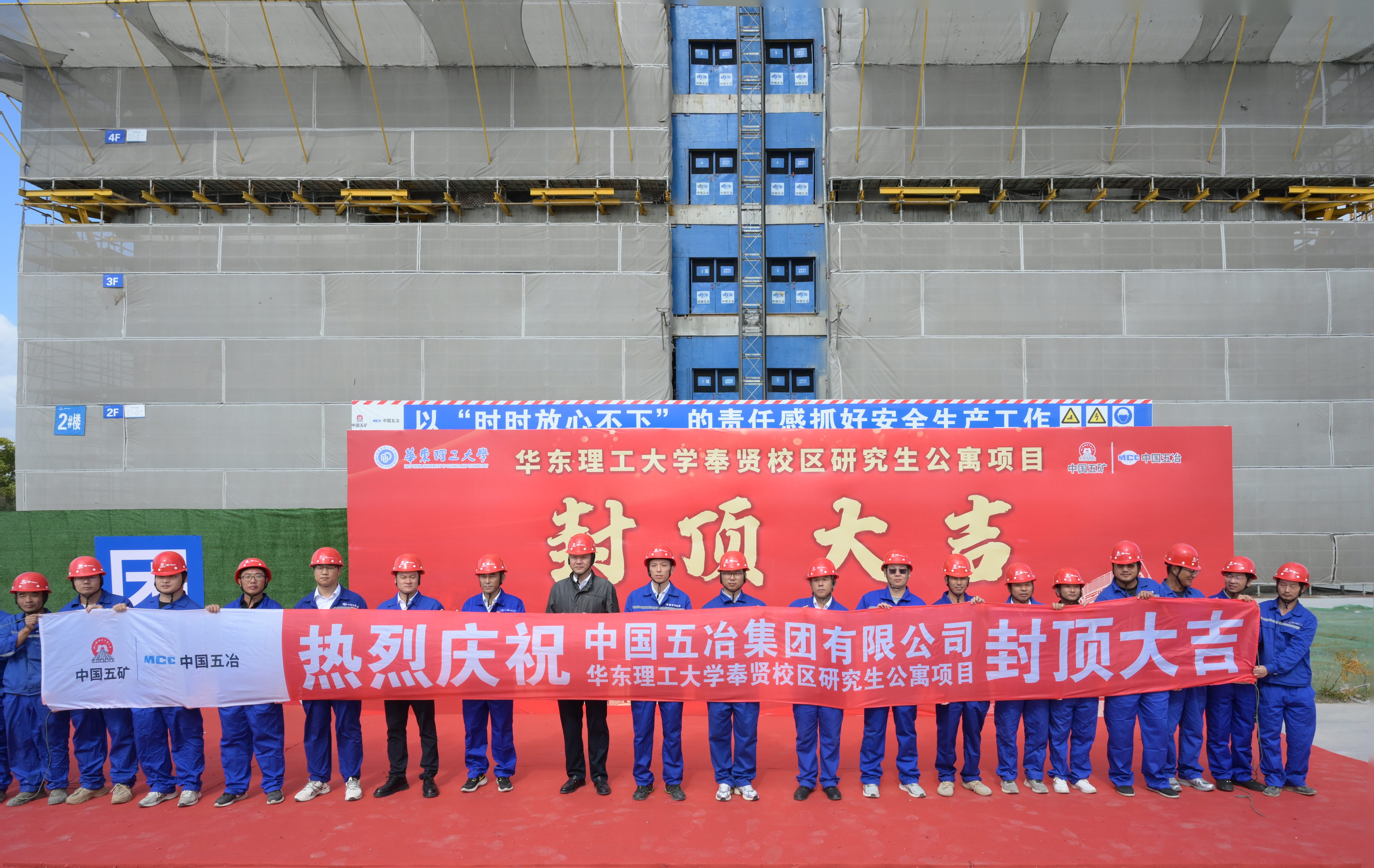 10月25日,中國五冶集團承建的華東理工大學奉賢校區研究生公寓項目舉行主體結構封頂儀式。